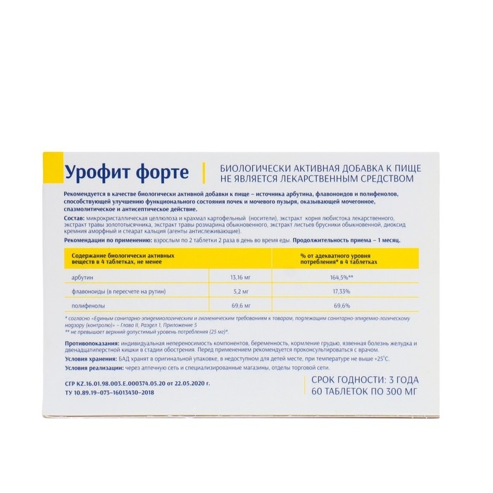 Урофит Форте улучшение функционального состояния почек, 60 таблеток по 300 мг