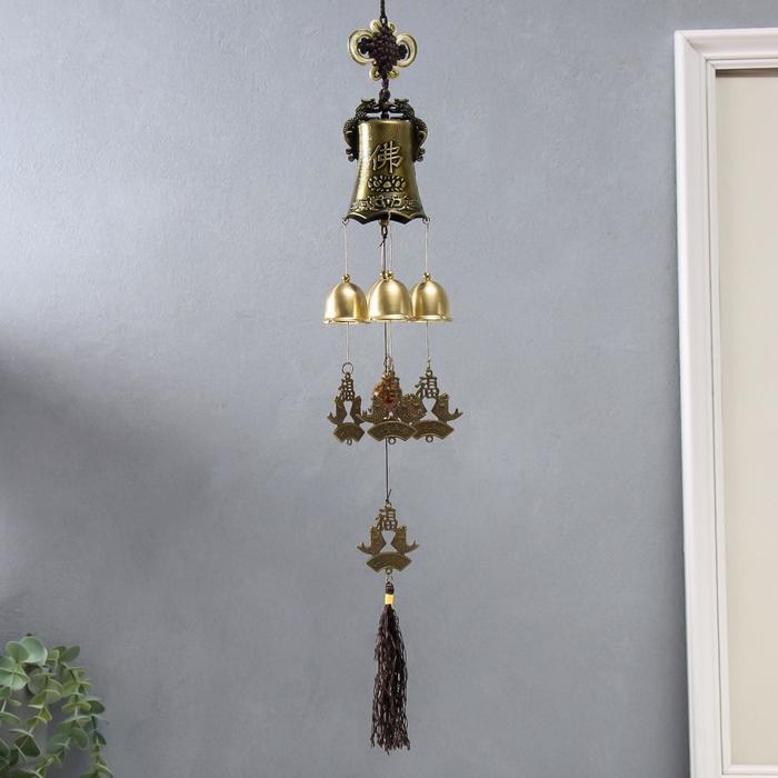 Музыка ветра металл "Большой колокол" 4 колокольчика 60 см