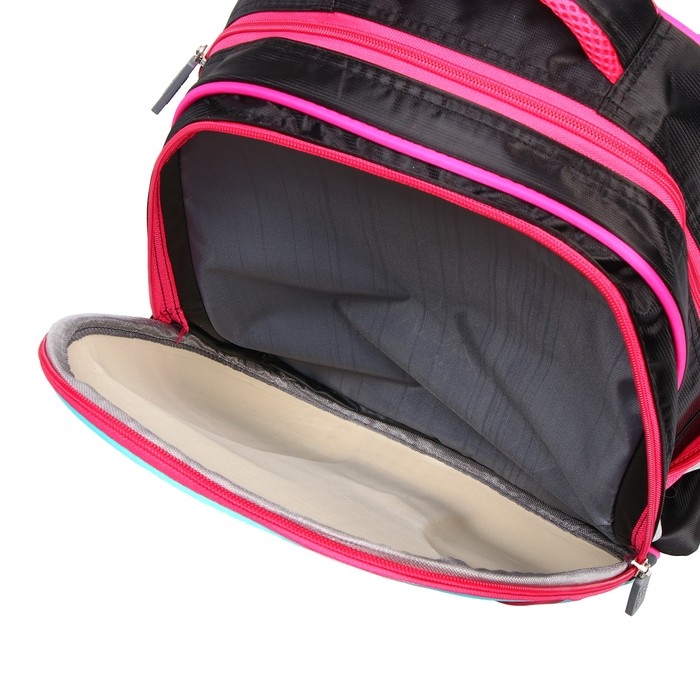 Рюкзак содержит два отделения на молнии, два боковых кармана, один внутренний карман.