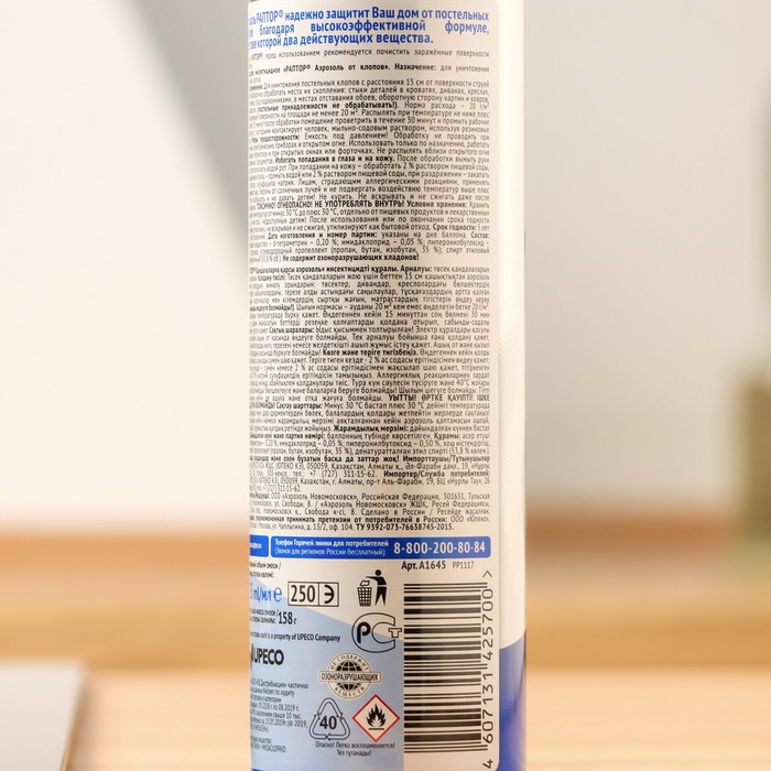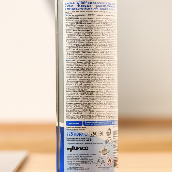 Аэрозоль от клопов Раптор, средство спрей, 225 мл