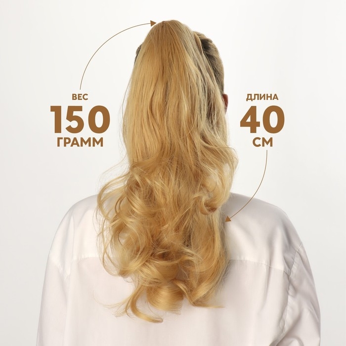 Хвост накладной, волнистый волос, на крабе, 40 см, 150 гр, цвет блонд(#HTY22)