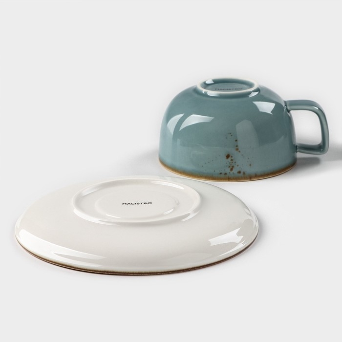 Чайная пара фарфоровая Magistro «Церера», 2 предмета: чашка 250 мл, блюдце d=16,5 см, цвет голубой