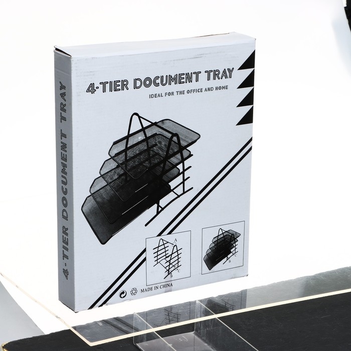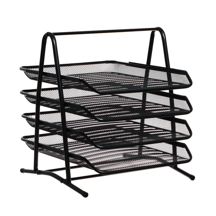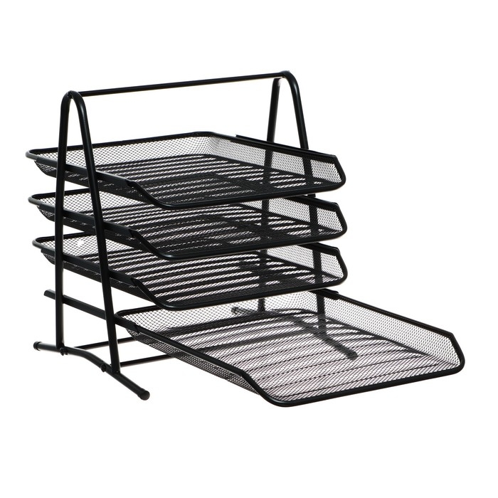 Лоток горизонтальный для бумаг 4 отделения сетка металл, чёрный