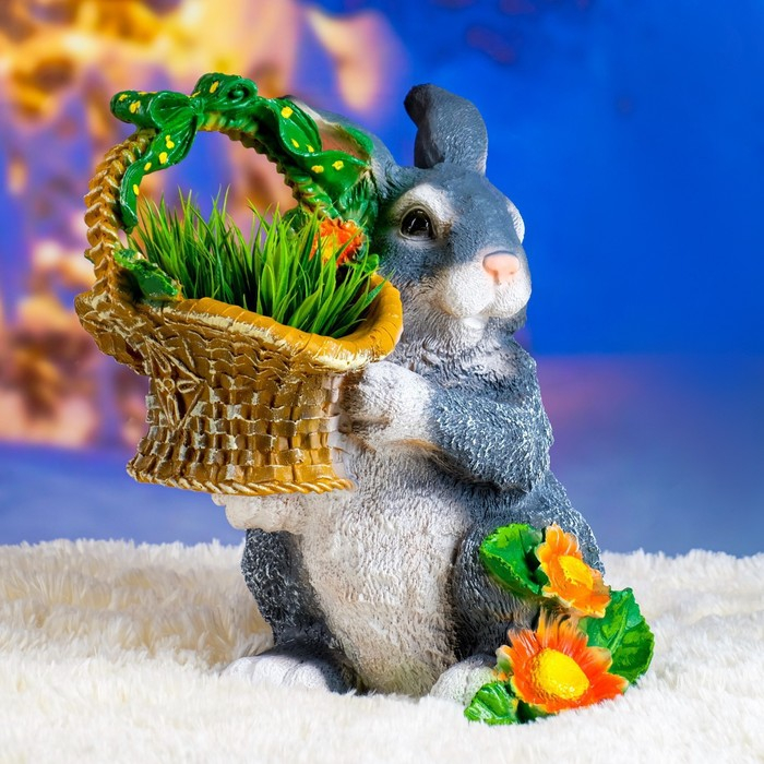 Садовая фигура "Зайка с лукошком" 29х26х32см