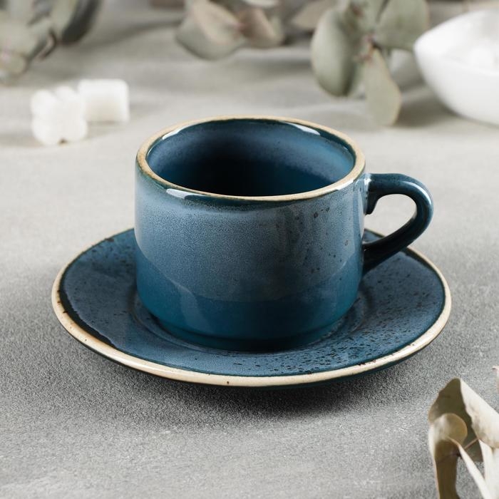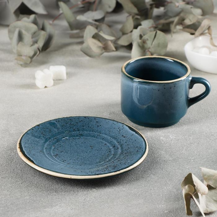 Чайная пара фарфоровая Magistro «Пэвэти», 2 предмета: чашка 220 мл, блюдце d=16,5 см, цвет голубой