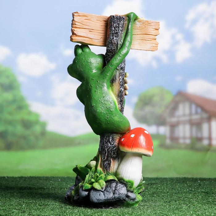 Садовая фигура "Лягушка с табличкой "ПРИВЕТ" 14х24х50см