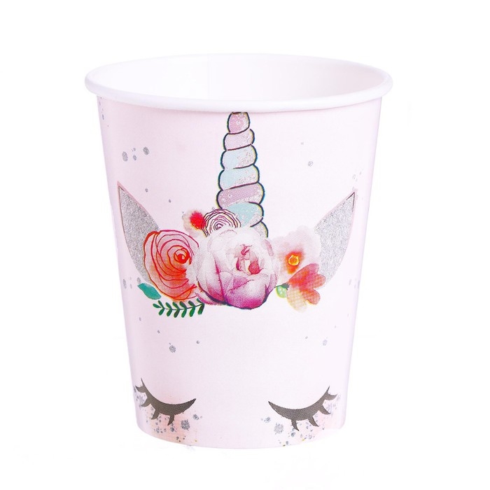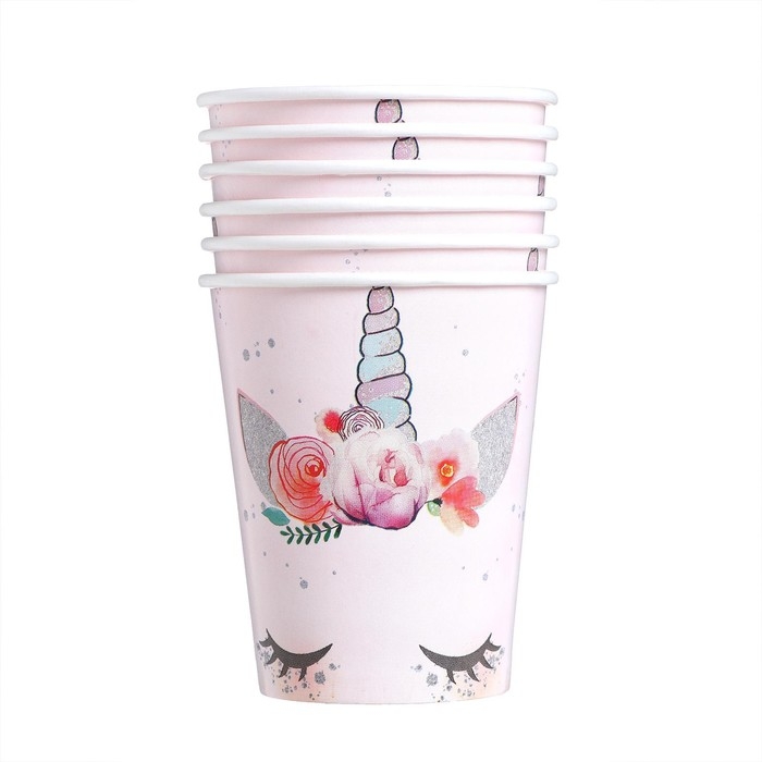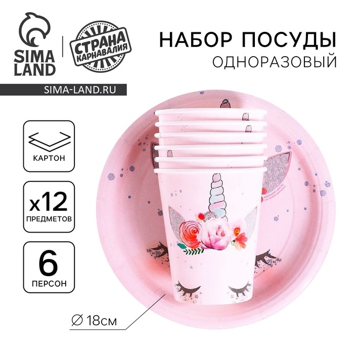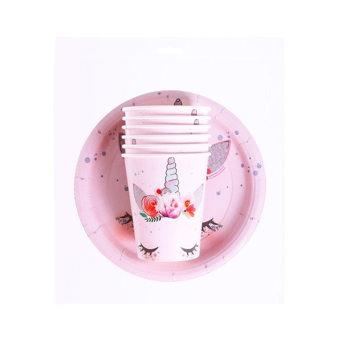 Набор бумажной посуды одноразовый Единорог Мордочка», 6 тарелок, 6 стаканов