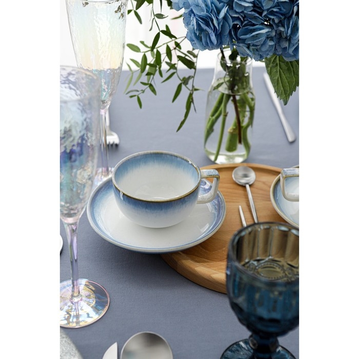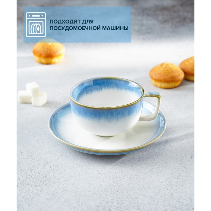 Чайная пара фарфоровая Magistro «Пэвэти», 2 предмета: чашка 220 мл, блюдце d=16,5 см, цвет голубой