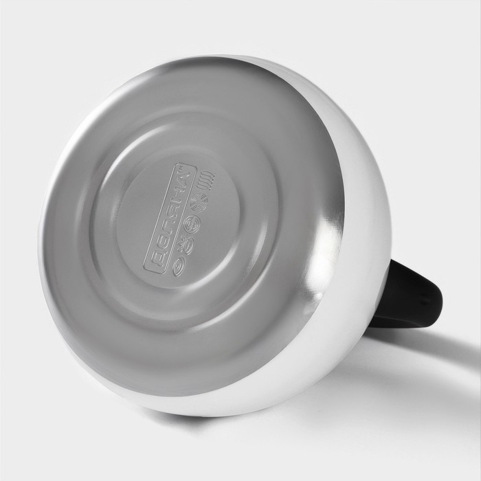 Чайник со свистком из нержавеющей стали Доляна «Чёрная ночь», 2 л, индукция, цвет хромированный