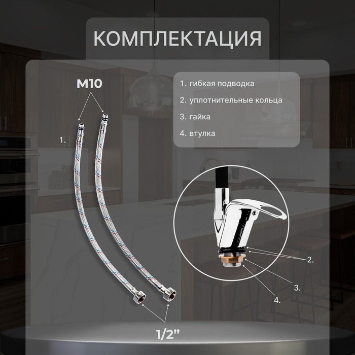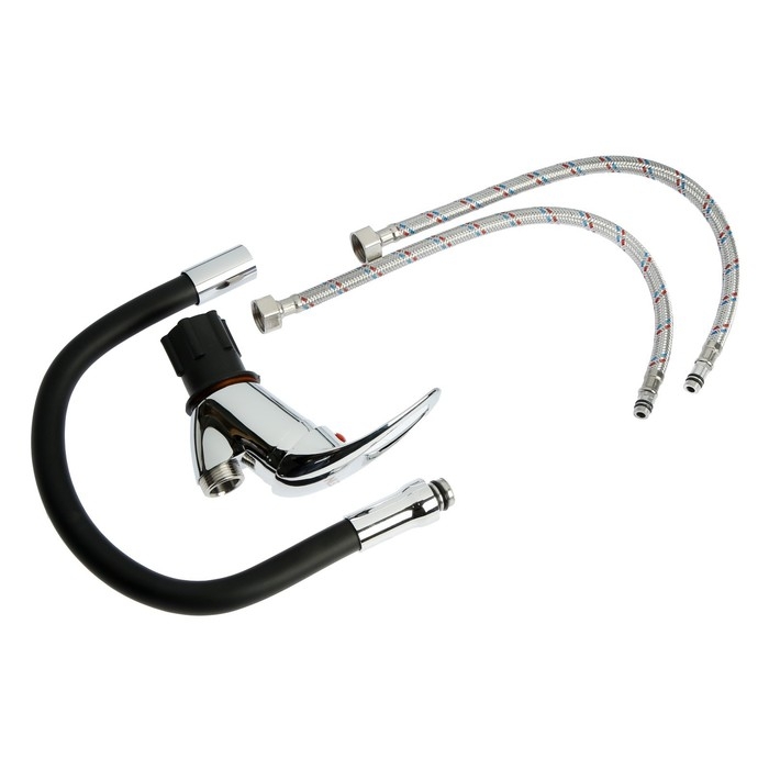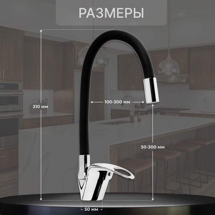 Смеситель для кухни ZEIN Z2111, однорычажный, гибкий излив, картридж 40 мм, черный/хром