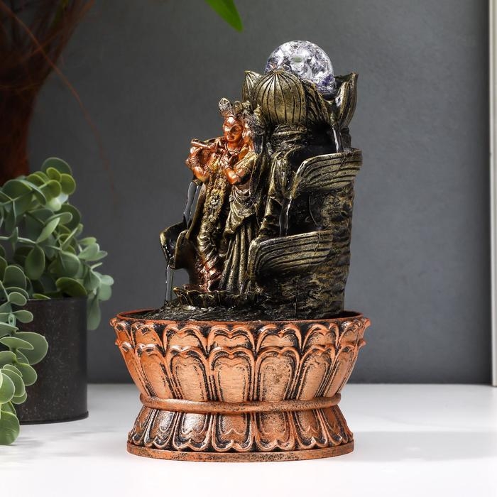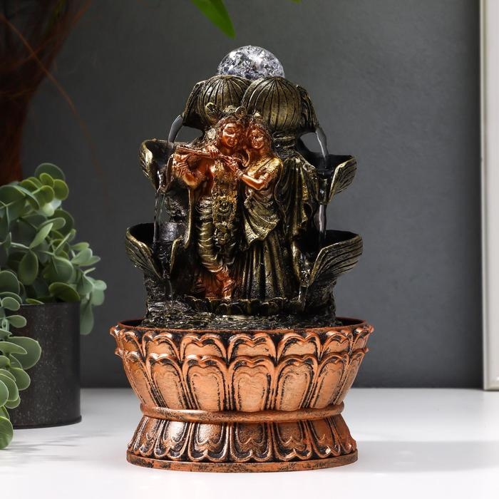 Фонтан настольный от сети, подсветка "Кришна и Радха у фонтана" 22,5х15х15 см
