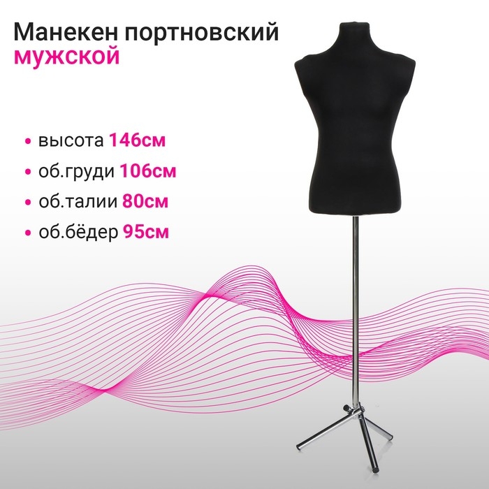 Манекен портновский на хромированной стойке «Мужской» 44-48, 106×80×95 см цвет чёрный