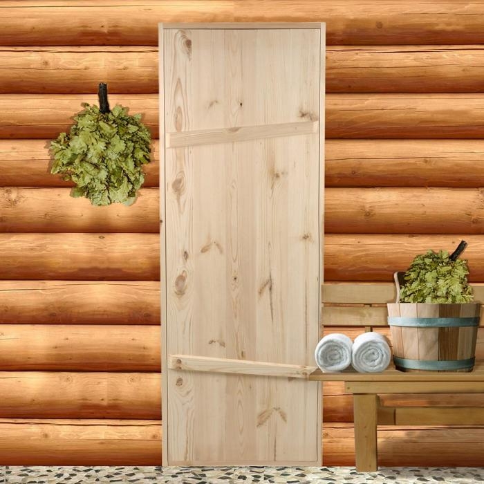 Дверной блок для бани, 180×70см, из сосны, на клиньях, массив, "Добропаровъ"