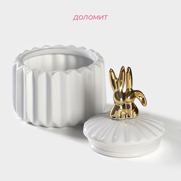 Банка керамическая для сыпучих продуктов Доляна «Золотой зайка», 600 мл, цвет керамическая, белый