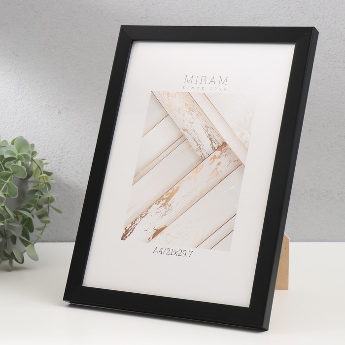 Фоторамка пластик "МИРАМ" 21х29,7 см, (A4) 644877, чёрный (пластиковый экран)