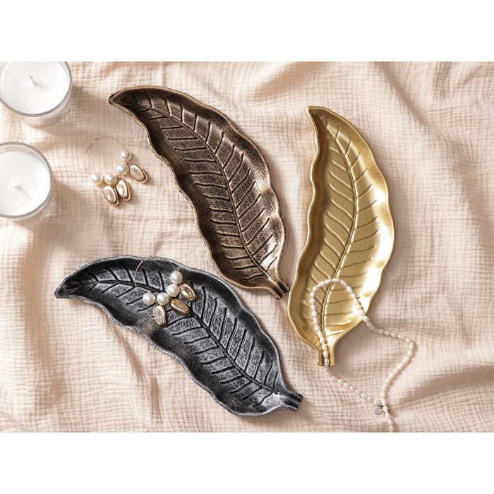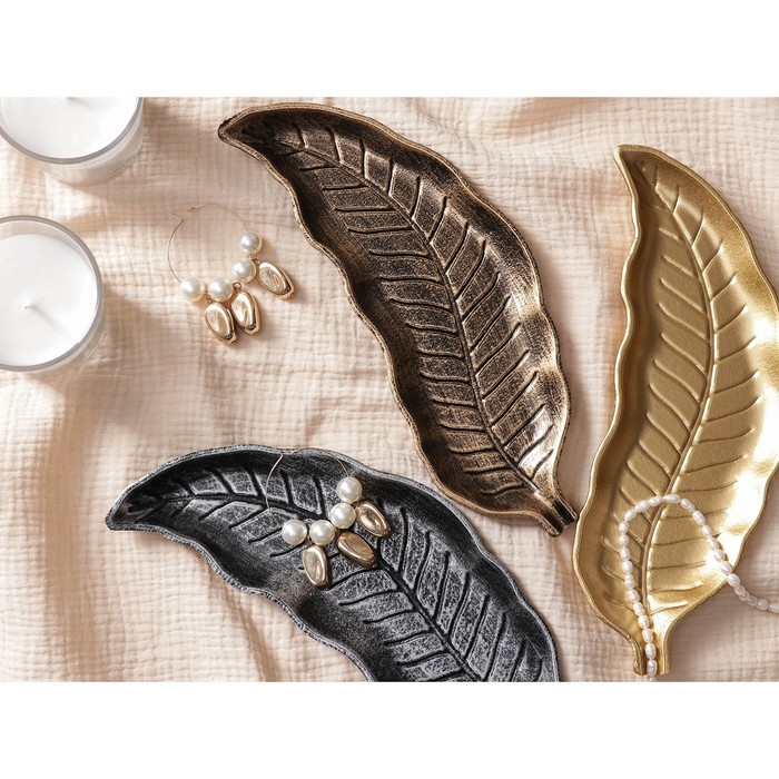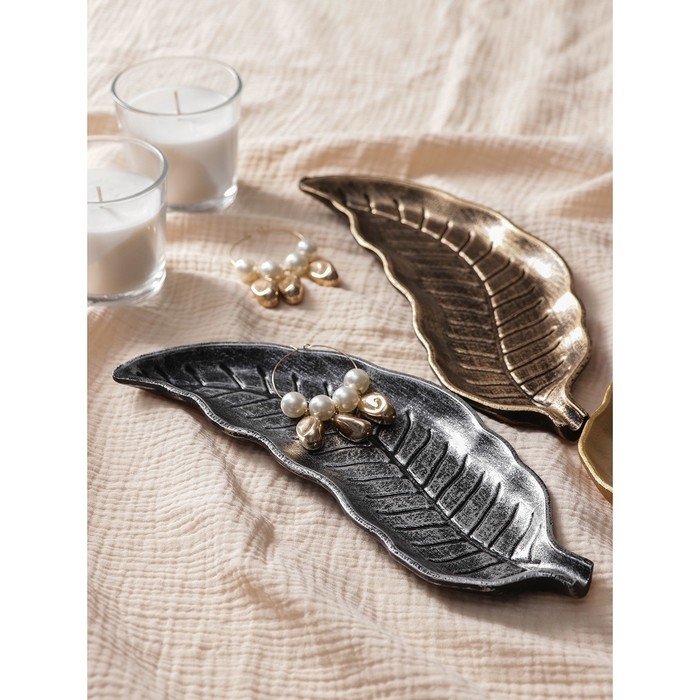 Блюдо для фруктов Доляна «Винтажный лист», 28×10 см, цвет серебряный