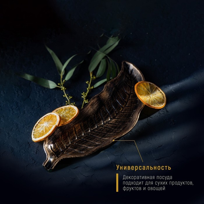 Блюдо для фруктов Доляна «Винтажный лист», 28×10 см, цвет бронзовый