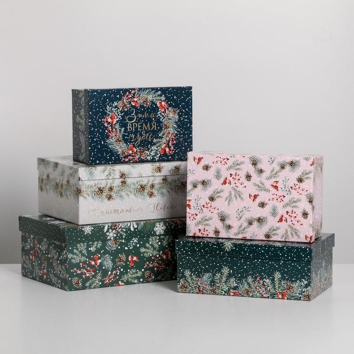Набор подарочных коробок 5 в 1 «Зима время чудес», 32,5 х 20 х 12,5 - 22 х 14 х 8,5 см, Новый год