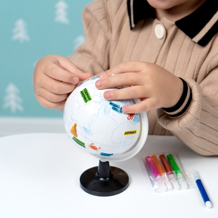 С ярким вращающимся глобусом на подставке ребёнок узнает много нового о планете Земля.
