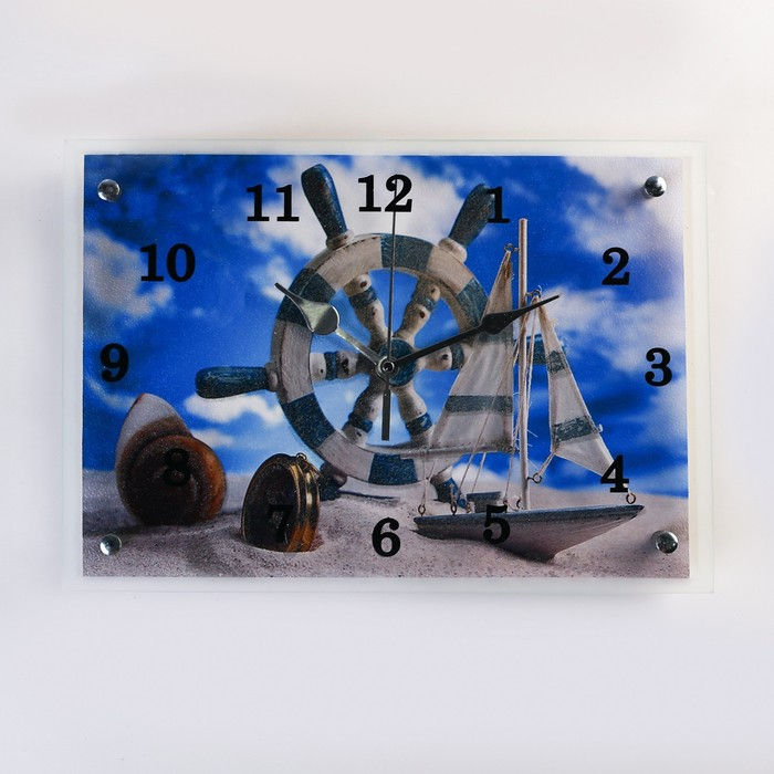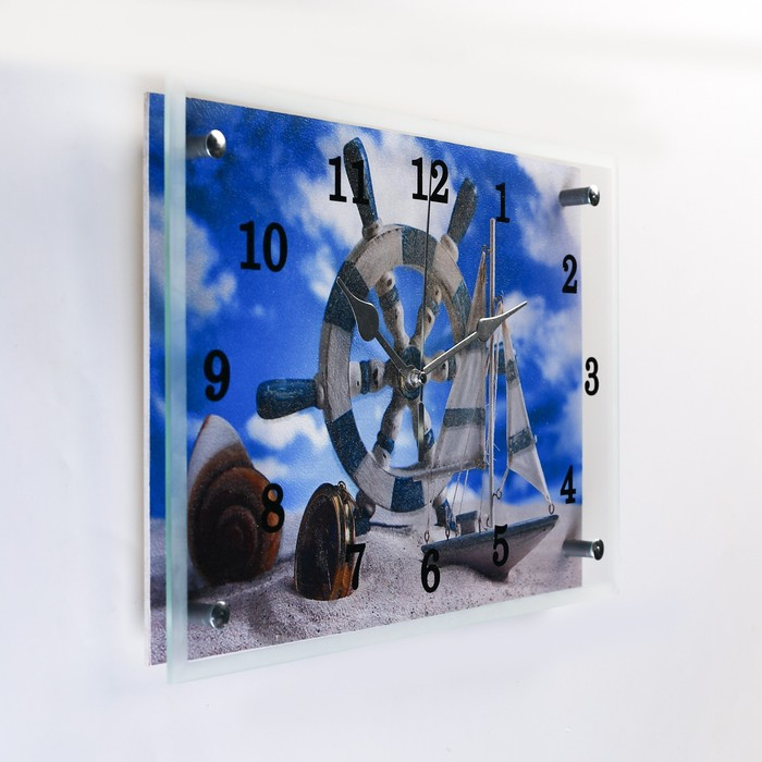 Часы-картина настенные, интерьерные "Штурвал и яхта на песке", бесшумные, 25 х 35 см