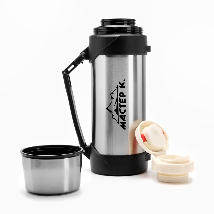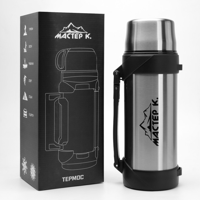 Термос, 2 л, Тропа "Мастер К.", с кружкой, сохраняет тепло 24 ч, 31.5 х 12 см, хром