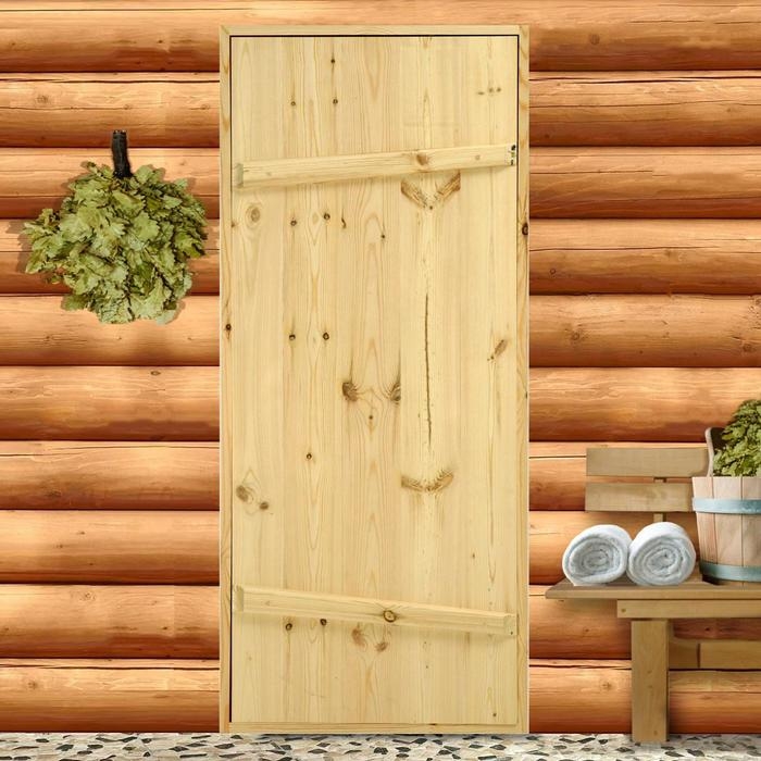 Дверной блок для бани, 180×70см, из сосны, на клиньях, массив, "Добропаровъ"