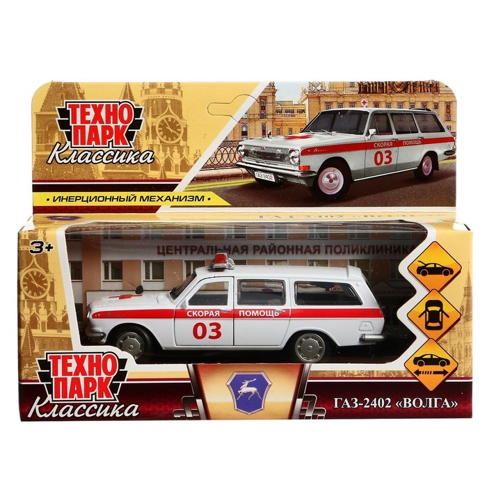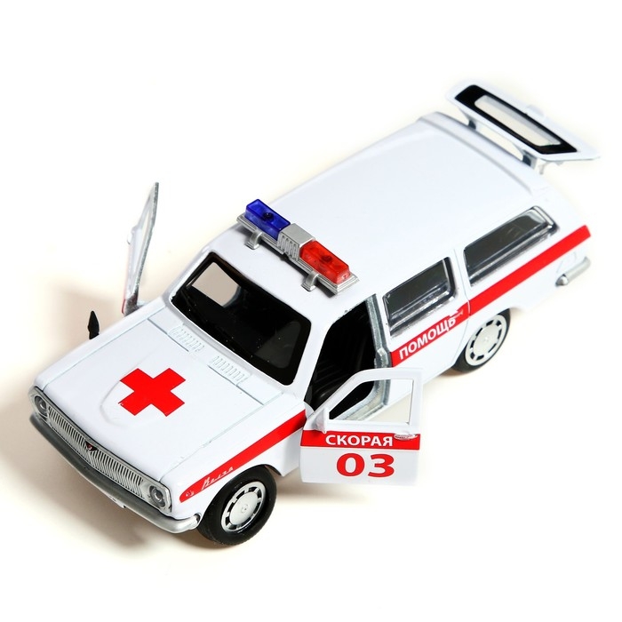 Машина металлическая ГАЗ-2402 «Волга скорая», 12 см, открываются двери и багажник, цвет белый