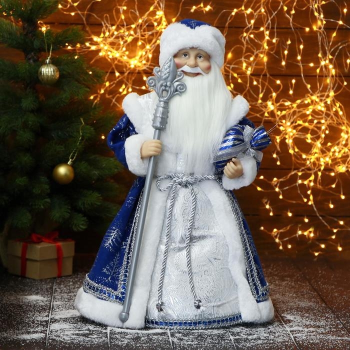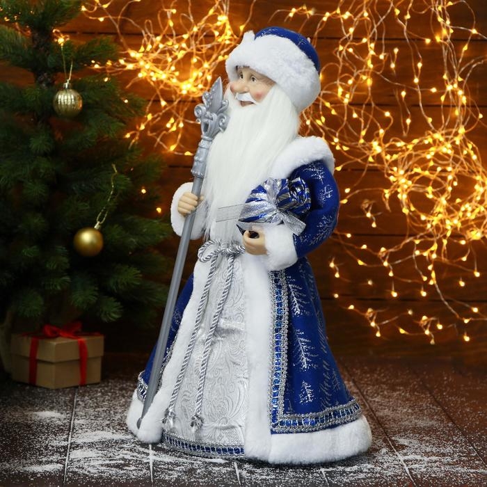 Дед Мороз "В синей шубе, с посохом и подарками" 24х50 см