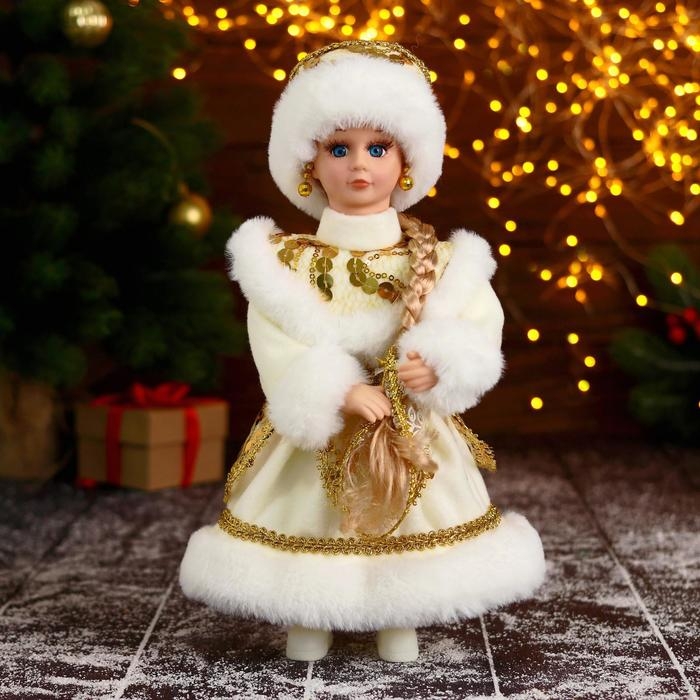 Снегурочка "В пышной шубке" с золотистыми украшениями, 14х30 см