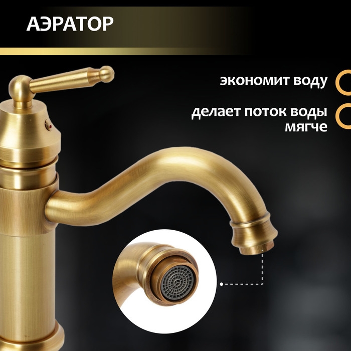 Смеситель для раковины ZEIN Ретро, изогнутый излив, без подводки, латунь, цвет бронза