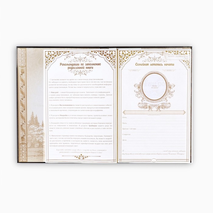 Семья — главное богатство в жизни человека! Сохранить традиции, записать историю поколений и передать их по наследству поможет родословная книга. Она содержит 50 листов (включая инструкции и наименования частей альбома), скреплённых между собой атласной лентой.
