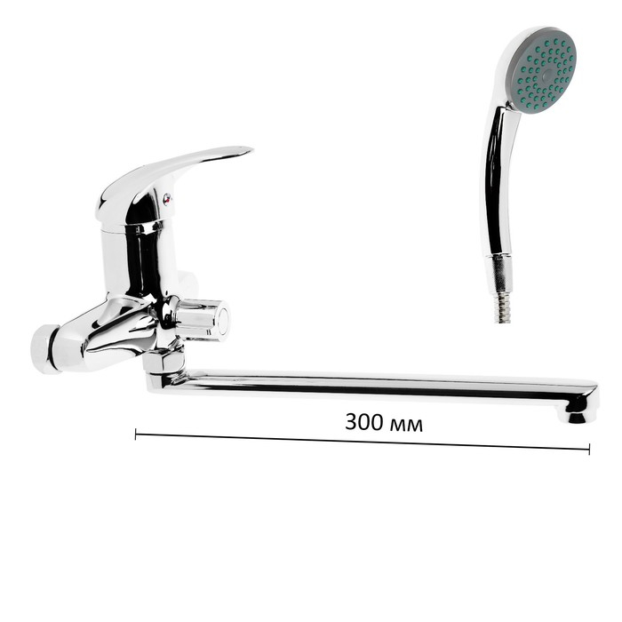 Смеситель для ванны Accoona A7140, однорычажный, излив 300 мм, с душевым набором, хром