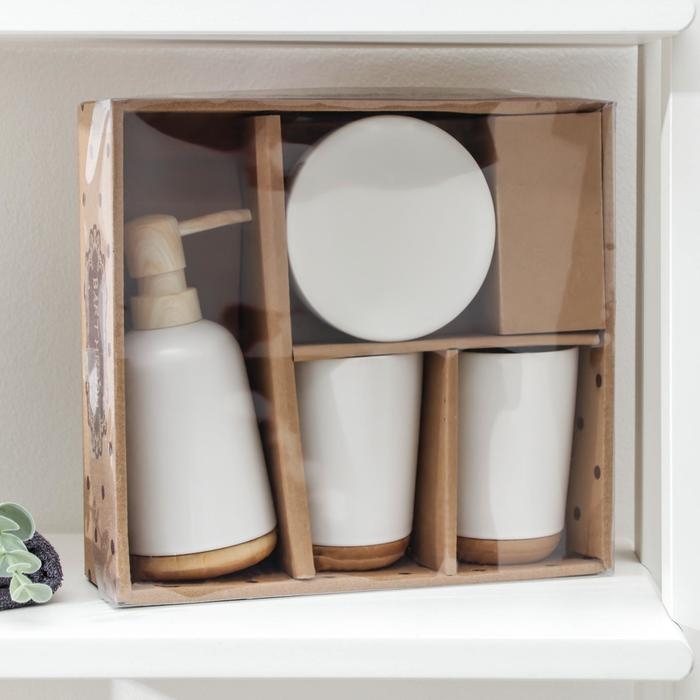 Набор аксессуаров для ванной комнаты «Эко», 4 предмета (мыльница, дозатор для мыла, 2 стакана), цвет белый