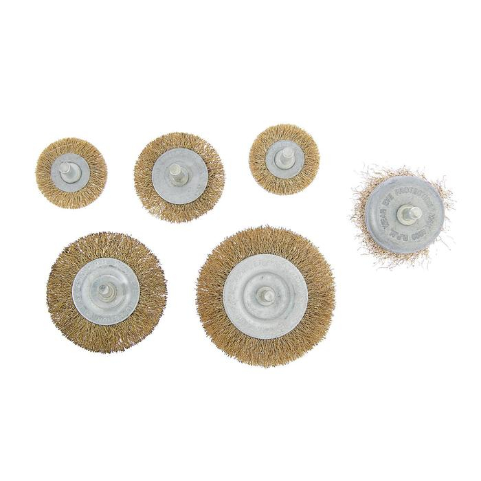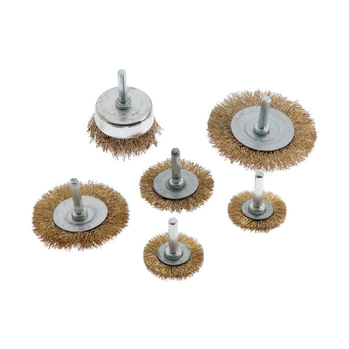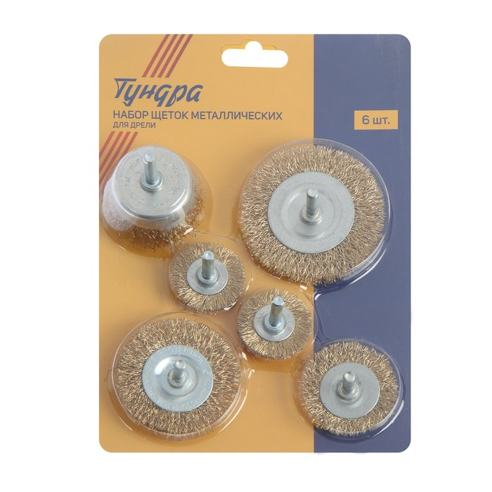 Набор щеток металлических для дрели ТУНДРА, плоские 40-50-65-75-100 мм, чашка 50 мм, 6 шт.