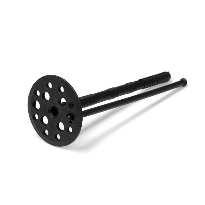 Дюбель состоит из двух частей: распорный стержень, закрепляющий элемент в отверстии и широкая шляпка, удерживающая материал. Благодаря конструкции, крепеж надежно фиксирует теплоизоляционные материалы с основанием, выдерживает различные погодные воздействия и гарантирует длительный срок службы.