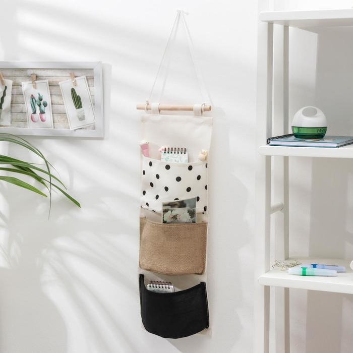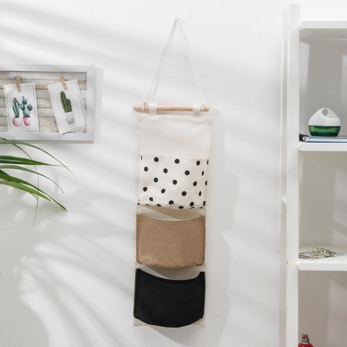 Органайзер подвесной с карманами Доляна «Мрамор», 3 отделения, 20×58 см, цвет бежевый