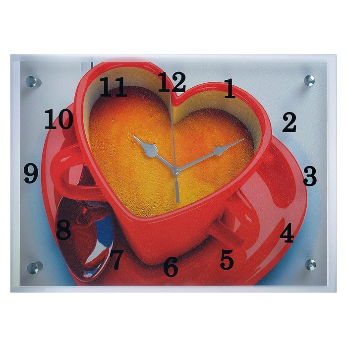 Часы-картина настенные, интерьерные "Чашка кофе сердце", бесшумные, 25 х 35 см