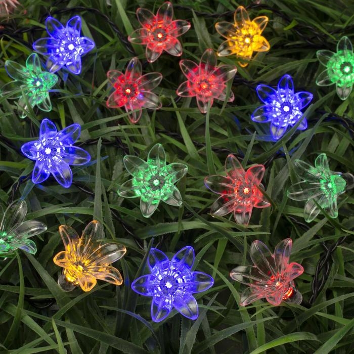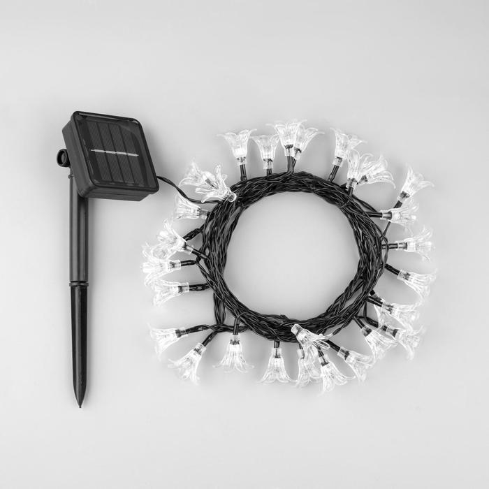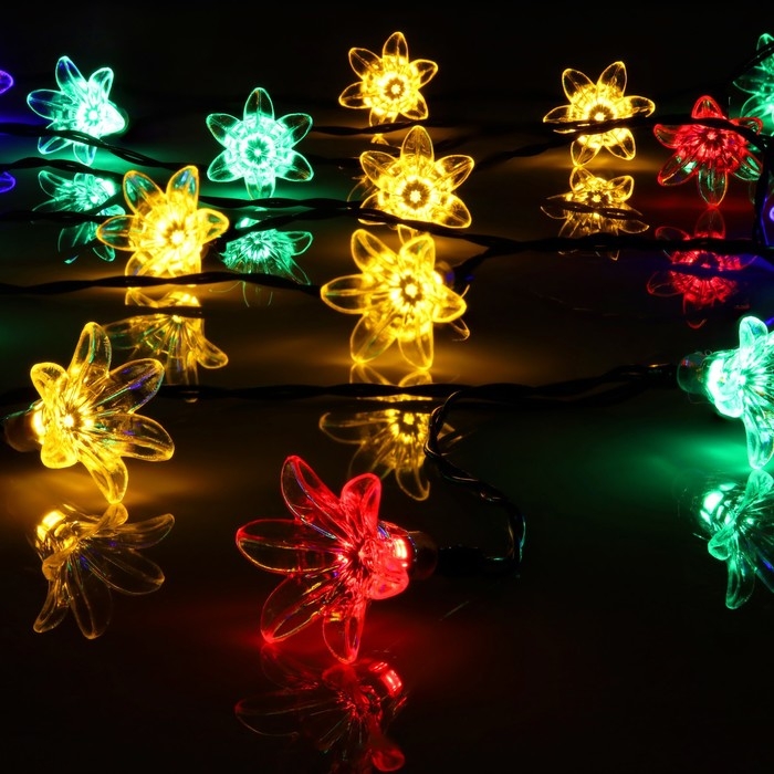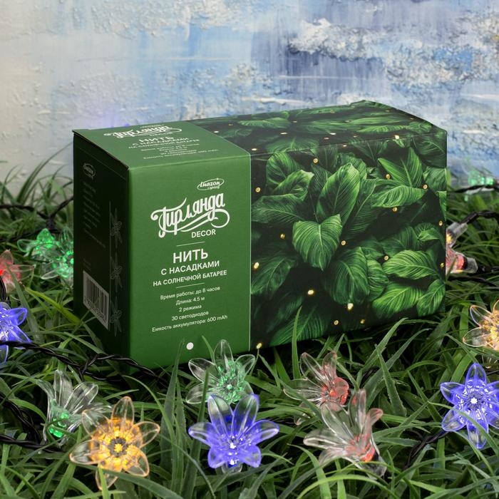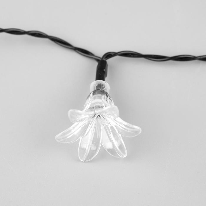 Гирлянда «Нить» 4.5 м с насадками «Цветы», IP44, тёмная нить, 30 LED, свечение мульти, 2 режима, солнечная батарея