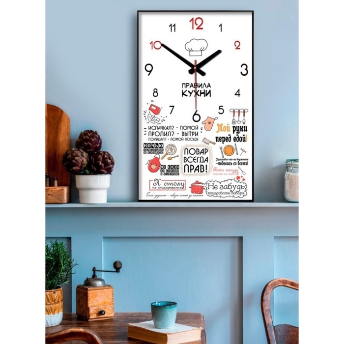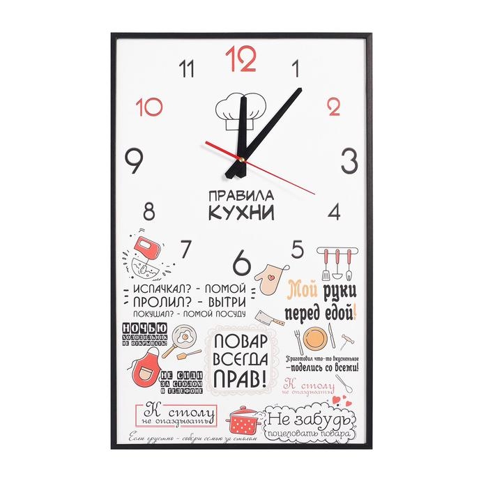 Часы-картина настенные, интерьерные "Правила кухни", плавный ход, 57 х 35 х 4 см