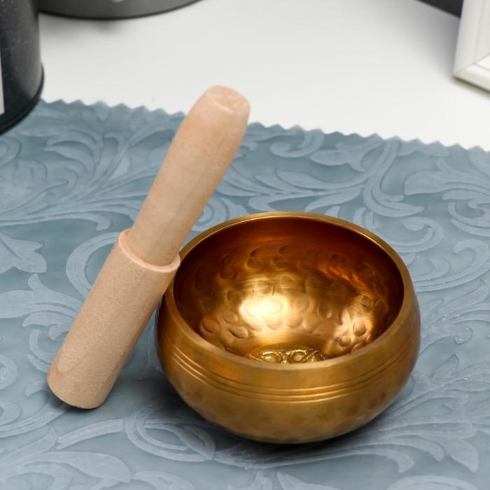 Поющая чаша металл золотая матовая "точки и цветок" с резонатором 4х8х8 см