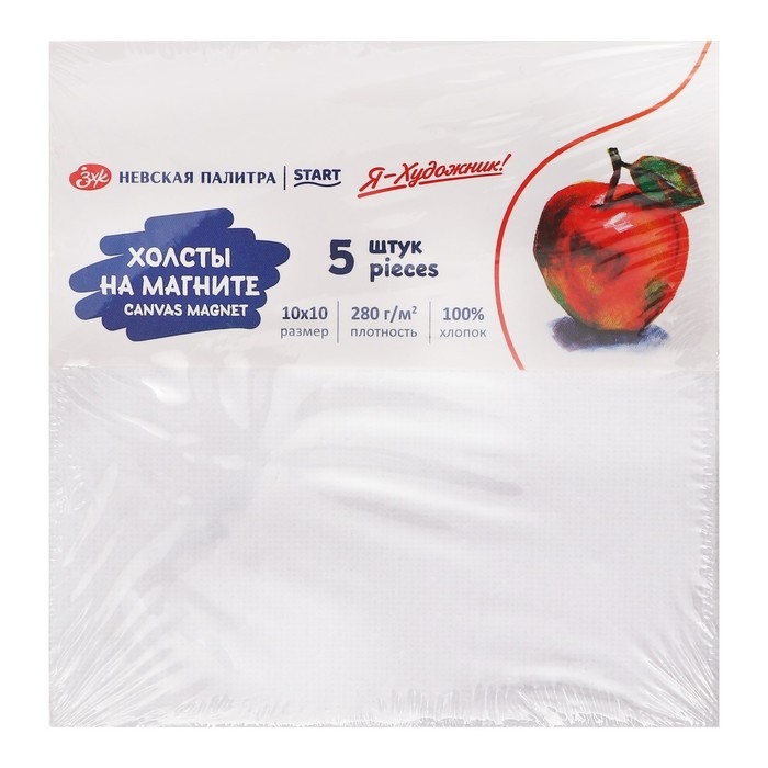 Холст-магнит набор 5 штук, 3 мм, 10 х 10 см, 280 г/м², квадратные, пакет с европодвесом
