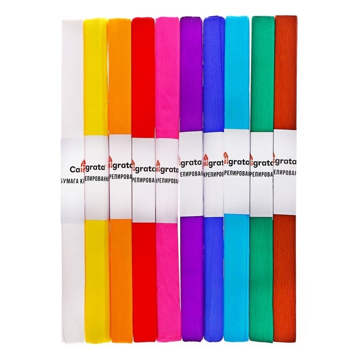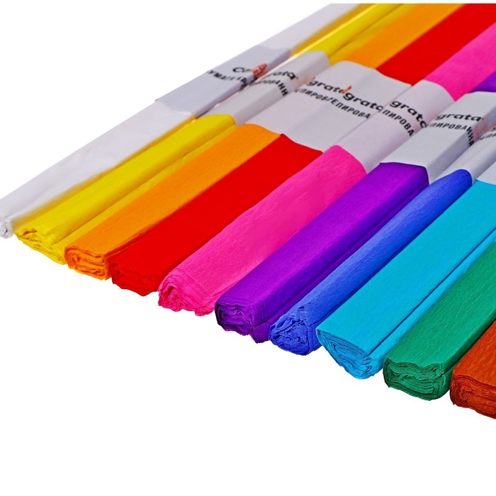 Набор бумаги крепированной "Плотная", рулон, 10 штук/10 цветов, 50 х 250 см, 32 г/м2