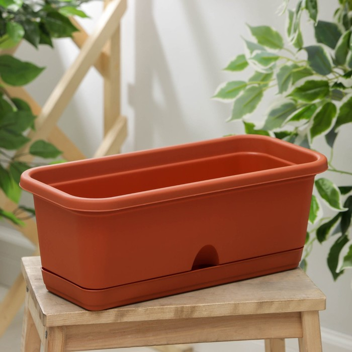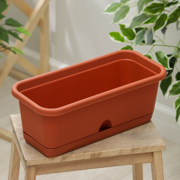 Ящик балконный с поддоном, 40 см, цвет терракотовый