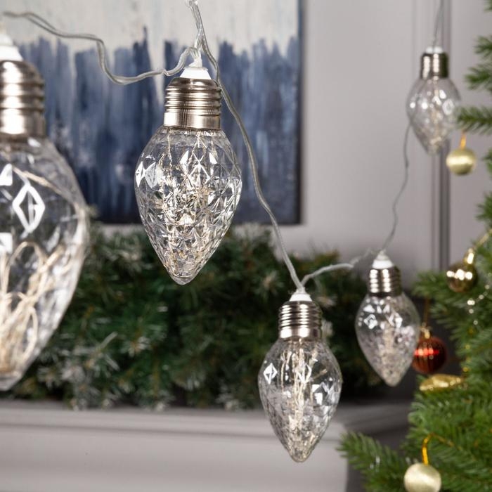 Гирлянда «Нить» 3 м с насадками «Лампочки шишки», IP20, прозрачная нить, 80 LED, свечение синее, 8 режимов, 220 В