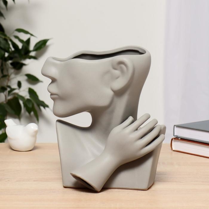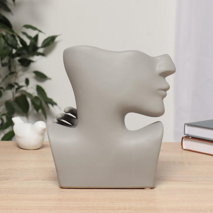 Ваза керамика настольная "Утончённый профиль" 14,5х8х20 см, серый
