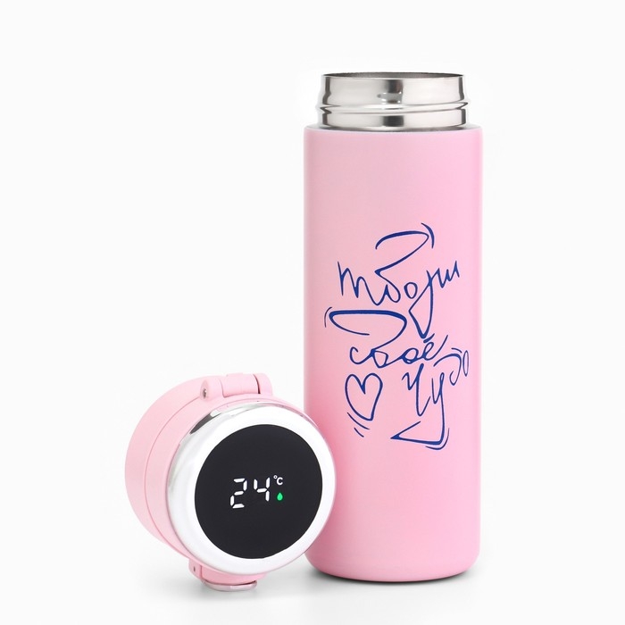 Термокружка, 420 мл, Simple "Твори своё чудо", сохраняет тепло 8 ч, термометр