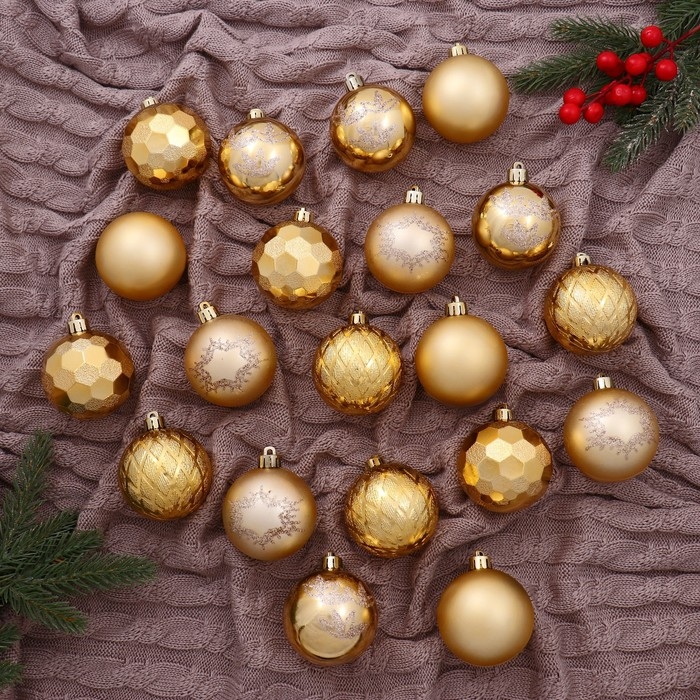 Набор шаров пластик d-6 см, 20 шт "Виржини ассорти" золото