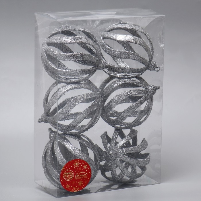Набор шаров пластик d-8 см, 6 шт "Селин" серебро