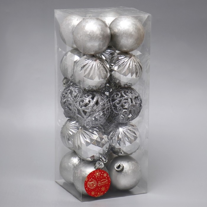 Набор шаров пластик d-6 см, 20 шт "Лоран узоры" серебро