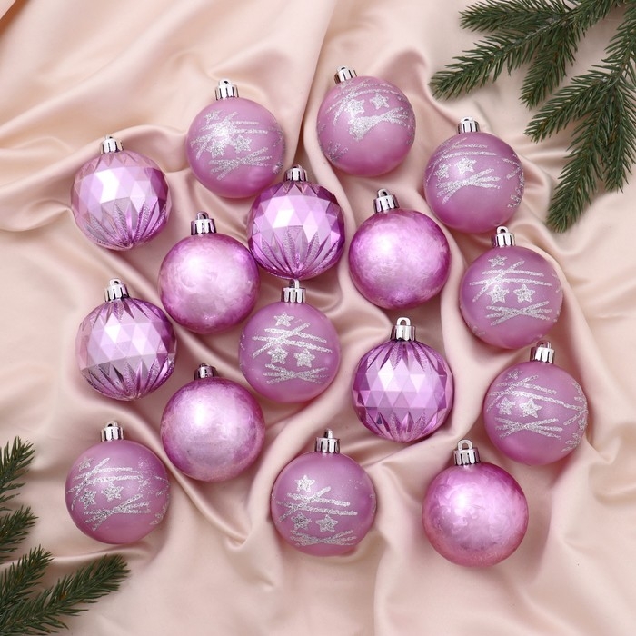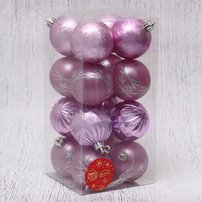 Набор шаров пластик d-6 см, 16 шт "Лоран ассорти" сиреневый